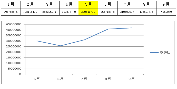 4、销售业绩增长。销售业绩突破400万元,8月份比7月份增长了96.1万元,9月份同比7月份增长了106.49万元。同比7月份增长了34.30%;